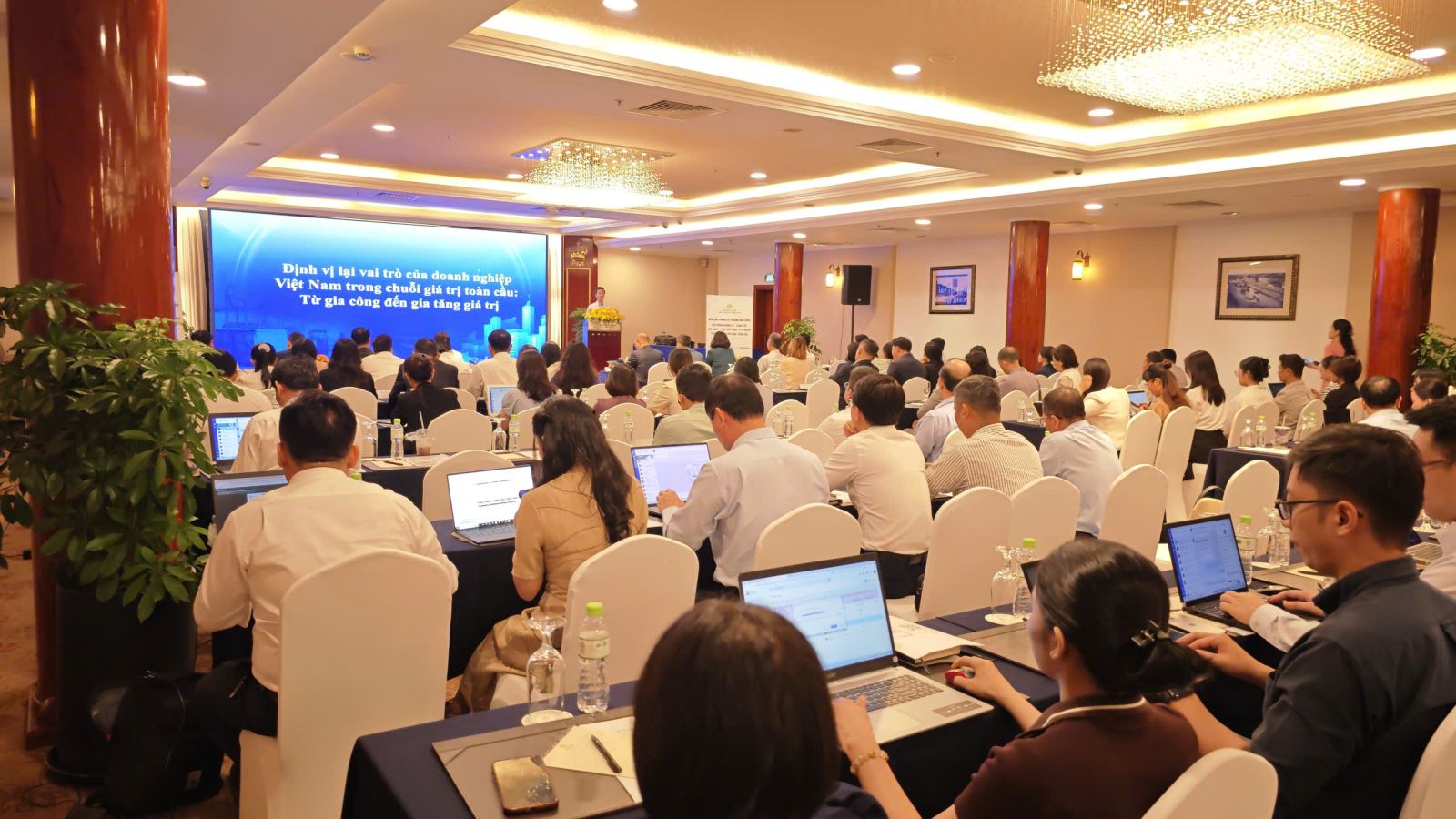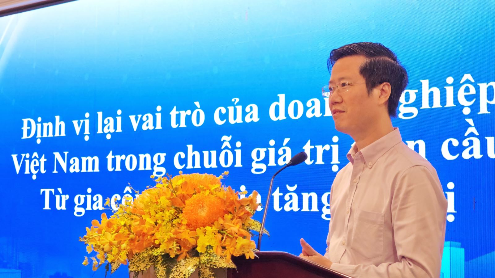 Tham luận của TS. Dương Duy Hưng Vụ trưởng, Vụ Kinh tế tổng hợp, Ban Chính sách, chiến lược Trung ương nhấn mạnh sự cần thiết phải định vị lại vai trò của doanh nghiệp Việt Nam trong chuỗi giá trị toàn cầu, chuyển từ gia công sang tạo giá trị cao. Ông chỉ ra các hạn chế như trình độ công nghệ thấp, thiếu nhân lực chất lượng cao, tư duy ngắn hạn và chưa chú trọng xây dựng thương hiệu. Để khắc phục, cần thúc đẩy đầu tư vào nghiên cứu và phát triển, nâng cao kỹ năng lao động, thay đổi tư duy sản xuất, tăng cường liên kết chuỗi và hoàn thiện thể chế hỗ trợ doanh nghiệp tư nhân phát triển bền vững và chủ động hội nhập quốc tế.