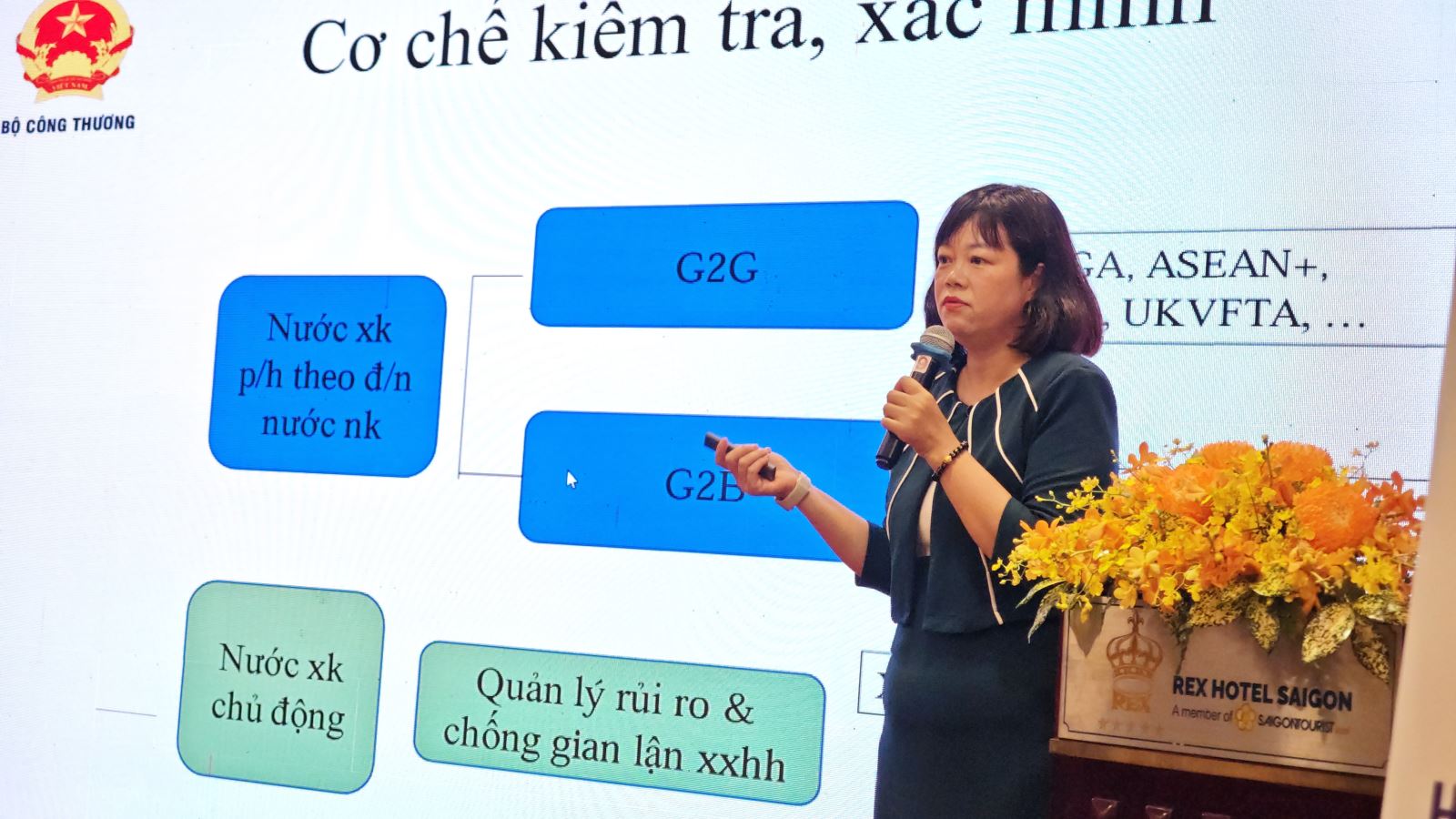 Tại Diễn đàn, đại diện Cục Xuất nhập khẩu, Bộ Công Thương trình bày tổng quan về khái niệm xuất xứ hàng hóa trong thương mại quốc tế, nhấn mạnh vai trò của việc xác định nguồn gốc sản phẩm đối với thuế quan, ưu đãi và kiểm soát nhập khẩu. Nội dung bao gồm các quy định pháp lý hiện hành, phân loại quy tắc xuất xứ theo tiêu chí như chuyển đổi mã HS, giá trị gia tăng hay công đoạn gia công, cùng với quy trình cấp giấy chứng nhận xuất xứ (C/O) tại Việt Nam. Đại diện Cục Xuất Nhập khẩu cũng đề cập đến những khó khăn thực tế trong việc xác định xuất xứ trong chuỗi cung ứng phức tạp và đưa ra một số kiến nghị nhằm cải thiện hiệu quả quản lý và hỗ trợ doanh nghiệp.