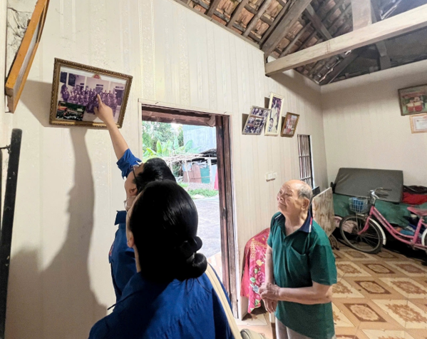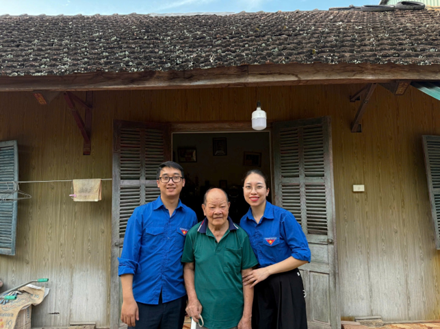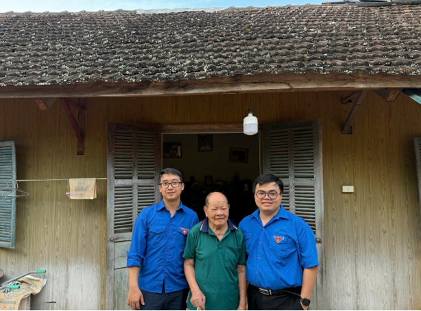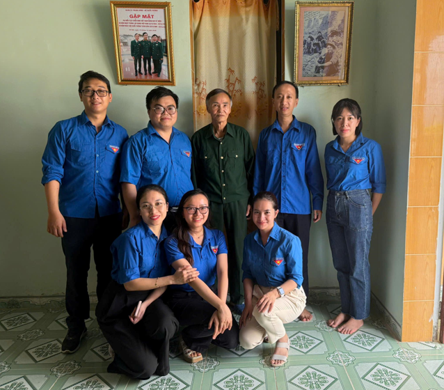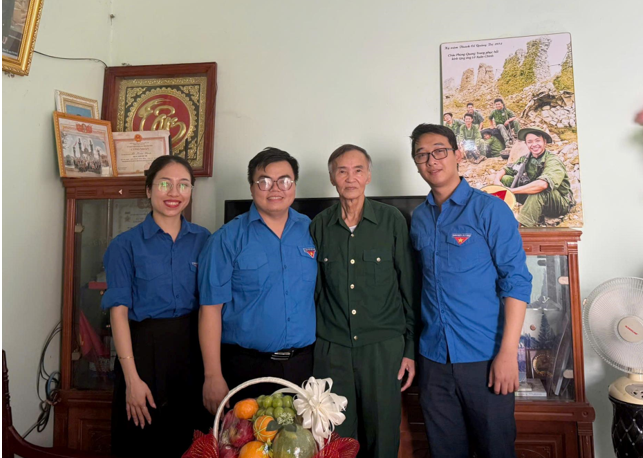 Tiếp đó, Chi đoàn cũng đã đến thăm Cựu chiến binh Lê Xuân Chinh – người chiến sĩ nổi tiếng với bức ảnh “Nụ cười chiến thắng bên Thành cổ Quảng Trị”. Sinh ra ở làng Phương La, Thái Bình (cũ) mồ côi cha từ nhỏ, ông đã nghe theo tiếng gọi của Tổ quốc và nhập ngũ năm 1971. Trải qua những ngày bom đạn, từng chịu thương nặng và chứng kiến đồng đội hy sinh, ông vẫn giữ tinh thần lạc quan và niềm tin vào ngày chiến thắng. Nụ cười rạng rỡ trên chiến trường năm 1972 không chỉ là lời gửi về mẹ già nơi quê nhà mà còn trở thành biểu tượng của ý chí kiên cường và tinh thần bất khuất của thế hệ đi trước.