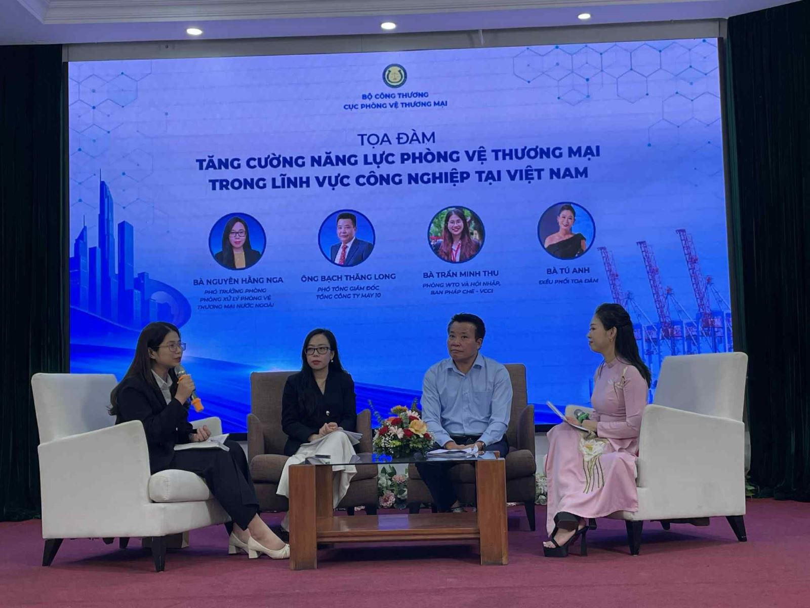 Đồng quan điểm, bà Trần Minh Thu (VCCI) nhấn mạnh rằng Việt Nam hiện nằm trong nhóm 20 nền kinh tế có quy mô thương mại lớn nhất thế giới, nhưng đi cùng với đó là rủi ro gia tăng về điều tra phòng vệ thương mại. “Đến nay, Việt Nam đã bảo vệ thành công hơn 50% số vụ việc phòng vệ thương mại, giúp nhiều ngành hàng duy trì kim ngạch xuất khẩu hàng tỷ USD,” bà Thu cho biết.